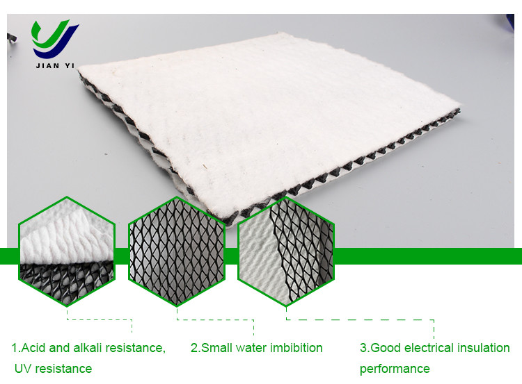شبکه ژئونت مرکب سه بعدی برای زهکشی از یک شبکه ژئونت سه بعدی منحصر به فرد و چسب با ژئوتکستایل در هر دو طرف ساخته شده است. این محصول دارای ویژگی ژئوتکستایل (فیلتراسیون) و ژئونت (زهکشی و حفاظت) است و یک سیستم عملکردی کامل "فیلتراسیون-زهکشی-حفاظت" را ارائه می دهد. هسته شبکه با ساختار سه بعدی منحصر به فرد خود می تواند بار فشرده سازی بالاتری را در حین ساخت تحمل کند و ضخامت معینی را حفظ کند و هدایت آب خوبی را فراهم کند.